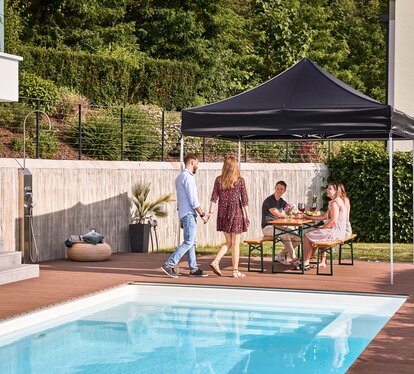 Trávit čas pod širým nebem Žádný problém, bez starostí? Je to možné! Naše party stany mají hodnotu UPF 50+. Poskytují proto vynikající ochranu před UV zářením . Ideální pro každého, kdo tráví nebo plánuje trávit hodně času venku. Naše party stany jsou navíc stoprocentně nepromokavé. Ať prší, nebo svítí slunce, máte střechu nad hlavou 365 dní v roce!