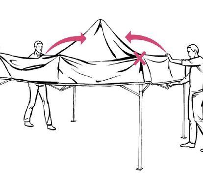 Montáž se může mírně lišit v závislosti na velikosti party stanu; party stan o rozměrech 3x3 m snadno sestaví 2 osoby během 2 minut.