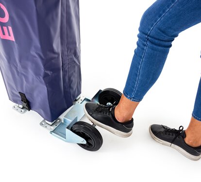 Díky malým rozměrům balení lze téměř všechny party stany bez problémů přepravovat autem. Například klasický party stan 3 × 3 m má rozměry balení 42 × 44 × 158 cm a integrovaná ochrana pro přepravu zajišťuje, že party stan zůstane vždy neporušený. Díky pryžovým krytkám nedochází ke tření mezi konstrukcí a střechou a přepravní ochrana funguje také jako tlumič nárazů, který tlumí otřesy a nárazy během přepravy. Naše přepravní kolečka pro nakládání a vykládání z auta: velmi snadno se připevňují a jsou ideální pro pohodlné překonávání i těch nejdelších vzdáleností.